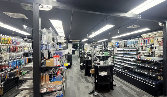 約70坪の広いスペースをフル活用した中型店舗です。工具の販売から最新機器のショールームまで東京本社に負けない品揃えを目指してます。最新の3Dプリンターや最新機器から工具まで展示販売する予定です。