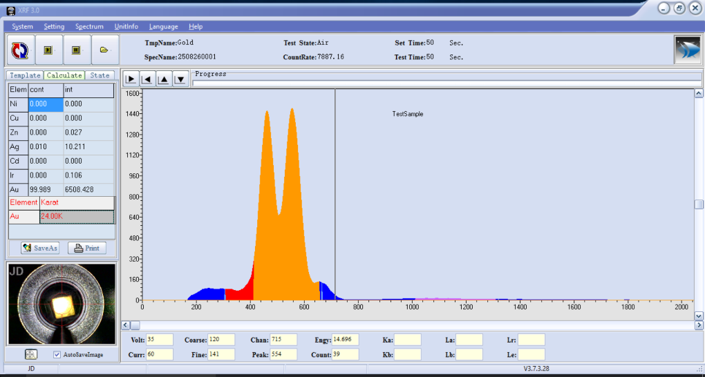 貴金属の計測を目的としたエコノミー分析器です。PC内蔵型のタッチパネル対応で、操作も簡単。対象物を設置し、ソフトウェア上の分析ボタンを押すだけで計測することができます。