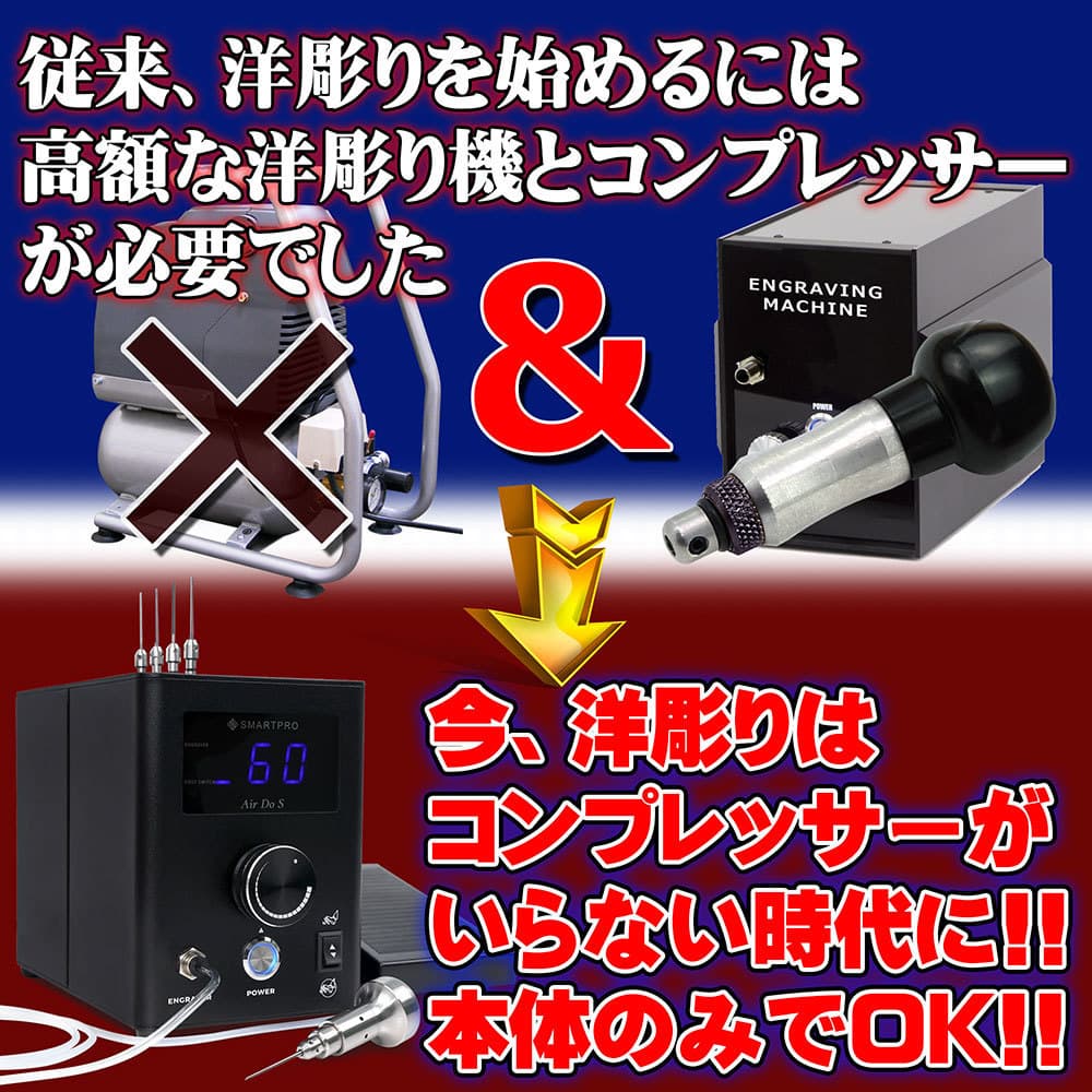 これまで、洋彫りを始めるには、洋彫り機と高価なコンプレッサーが必要でした。