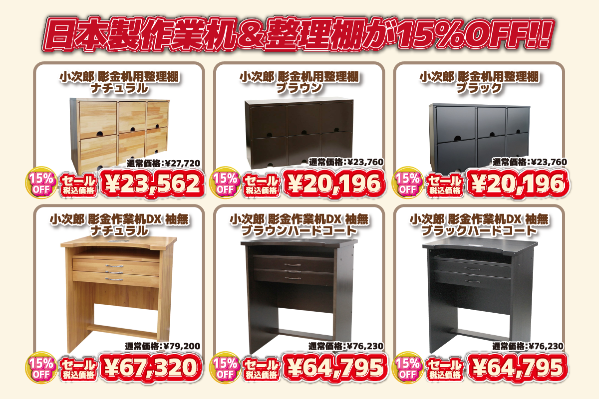 イベント名 | 散らかる工具をスッキリ収納!彫金机&収納用品セール |