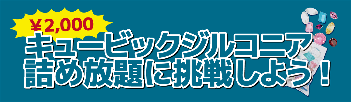 キュービックジルコニアの詰め放題を開催します。無くなり次第終了の売り尽くし特価ですので、ぜひご参加ください!