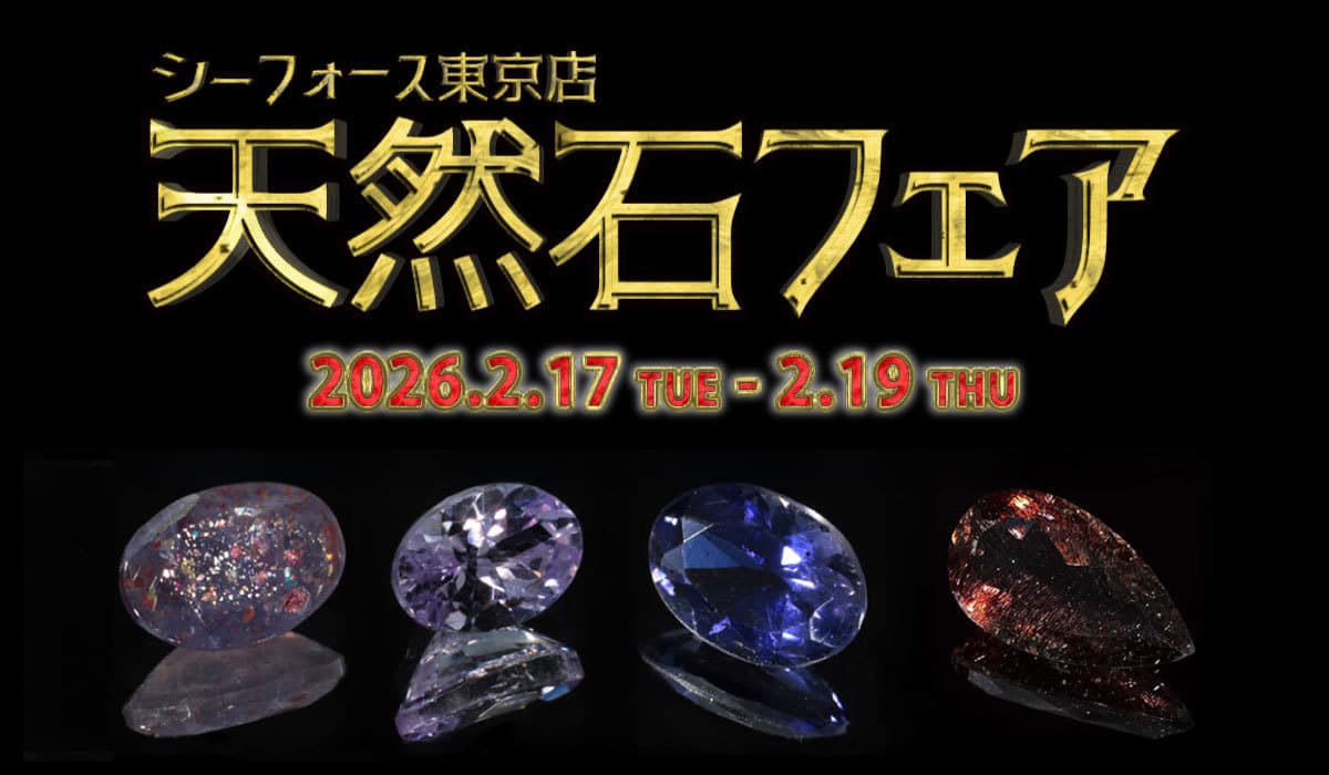 いつも当店をご利用いただき誠にありがとうございます。2026年2月17日(火)より3日間、「天然石フェア」を開催いたします。一点物の天然石が30%OFFと大特価なほか、キュービックジルコニアの詰め放題やクレーンゲームなど楽しい企画をご用意しています。ぜひ、お気に入りの石を見つけてお迎えしてください!